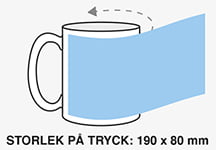 Svart mugg där motivet kommer fram när den fylls med varm dryck. Dessa trycks med fullfärgstryck på framsidan, baksidan eller som panoramabild runt muggen. Muggen är reptålig och kan utan problem diskas i maskin och användas i mikron. Tryckyta för fram- och baksida är 90×80 mm och panoramatrycket är 190x80mm.